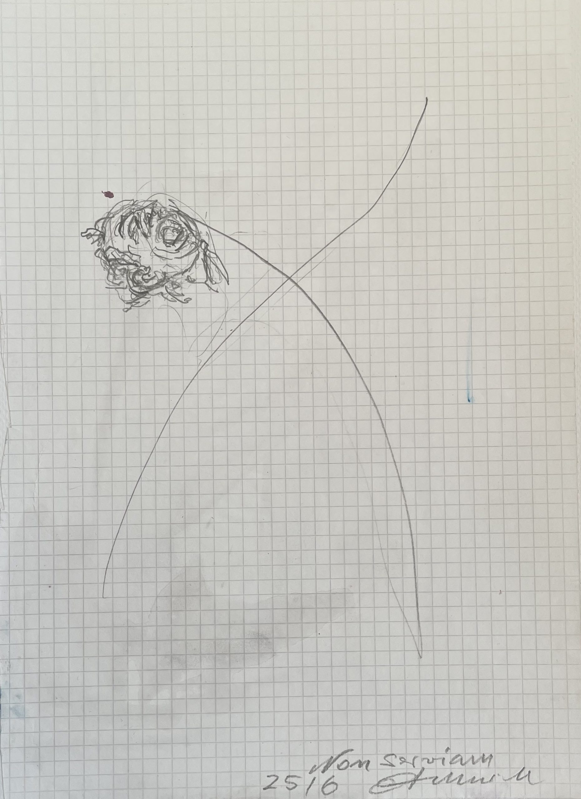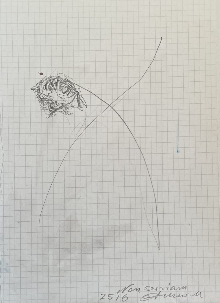 10. „Non serviam. So stürzte hinab, der stolze Blitz des Intellekts.“ J.Joyce, Ulysses, Bleistift, 28×20 cm
