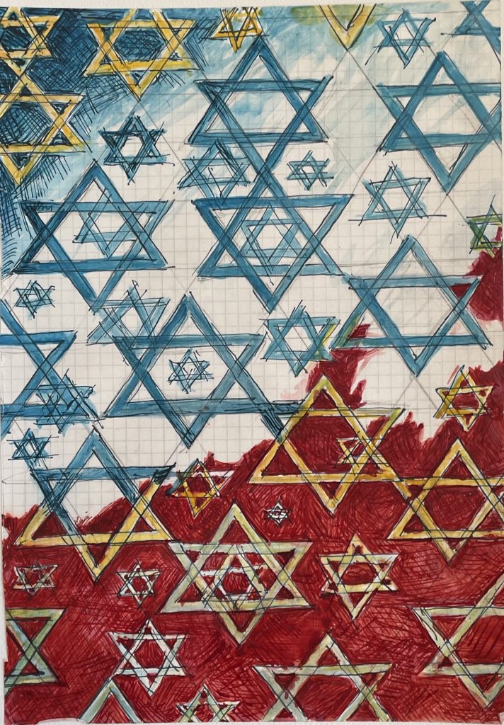 20. „Es schneit im Heiligen Land.“, Tusche und Aquarell, 28×20 cm