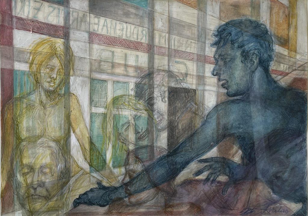 Spiegelungen, Tusche, Tempera auf Papier, 37×51 cm