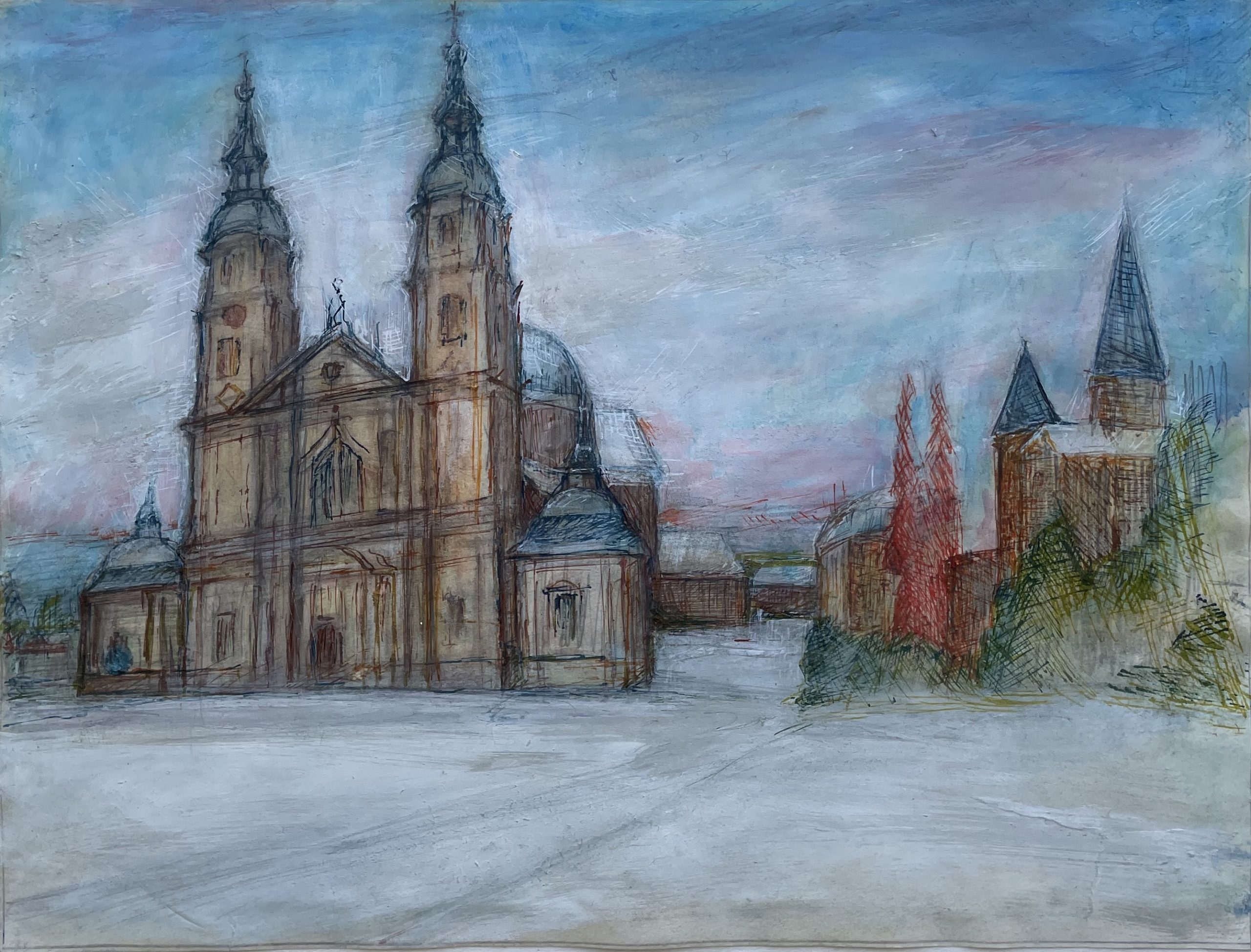 Dom zu Fulda, Tusche, Tempera auf Papier, 23,5×31,5 cm